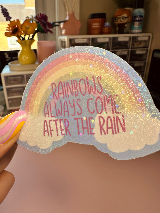 'Rainbows always come after the rain' sticker