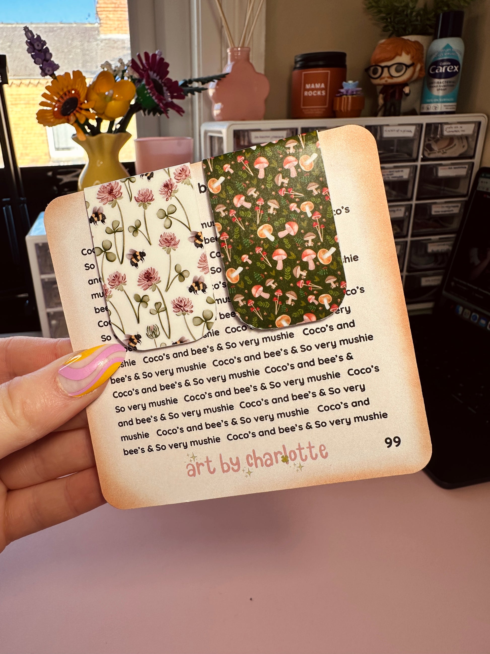 Add a touch of nature to your reading experience with our nature patten magnetic bookmarks. Featuring our charming `Coco`s and Bee`s` pattern and our popular `So very mushie` design, these bookmarks are a must-have for any book lover.