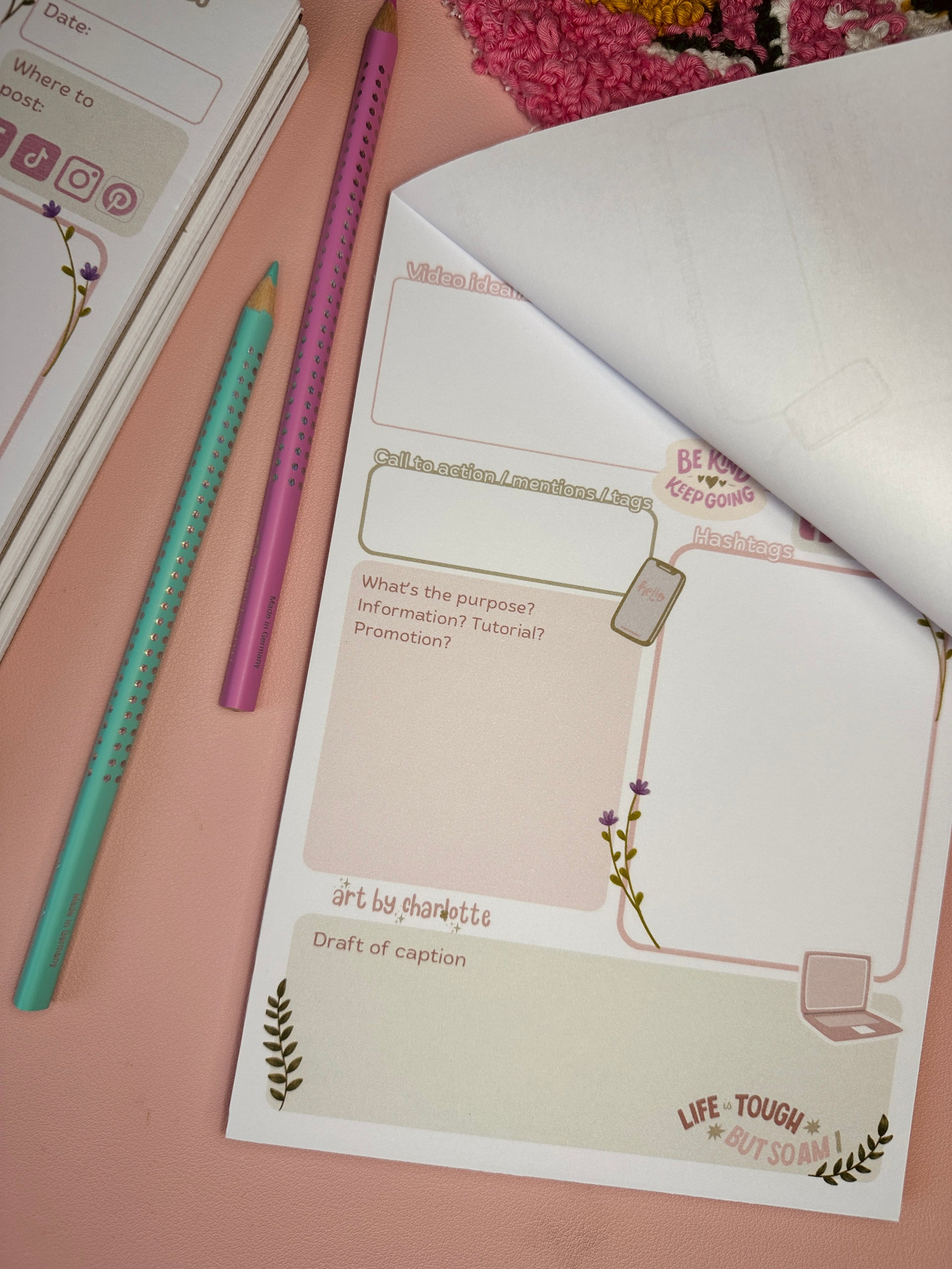 Are you tired of constantly forgetting your video ideas? Look no further than our A5 Video Planner Memopad. This innovative tool is designed specifically for social media content creators, making it easier than ever to organise and plan your videos. With its compact size, it's the perfect addition to your desk, allowing you to effortlessly stay on top of your game. Say goodbye to scattered notes and hello to a more efficient and effective way of planning your content. Get your hands on this must-have A5 Video Planner Memopad today and take your video creation to the next level.