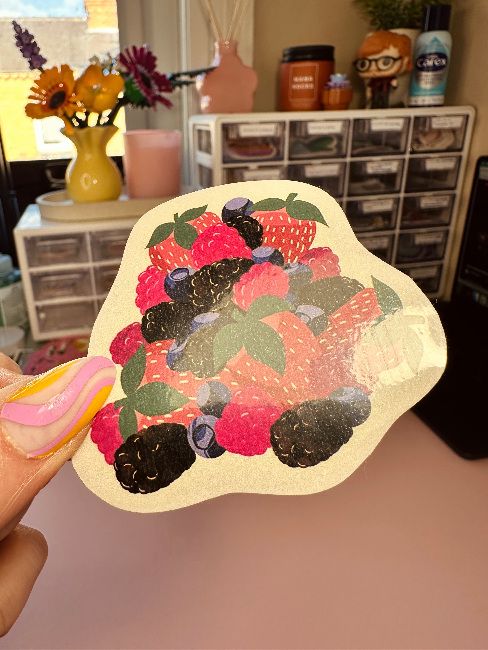 This vibrant and bold design features a beautiful arrangement of various berries, making it the perfect addition for anyone who loves fruit and food-themed stickers.