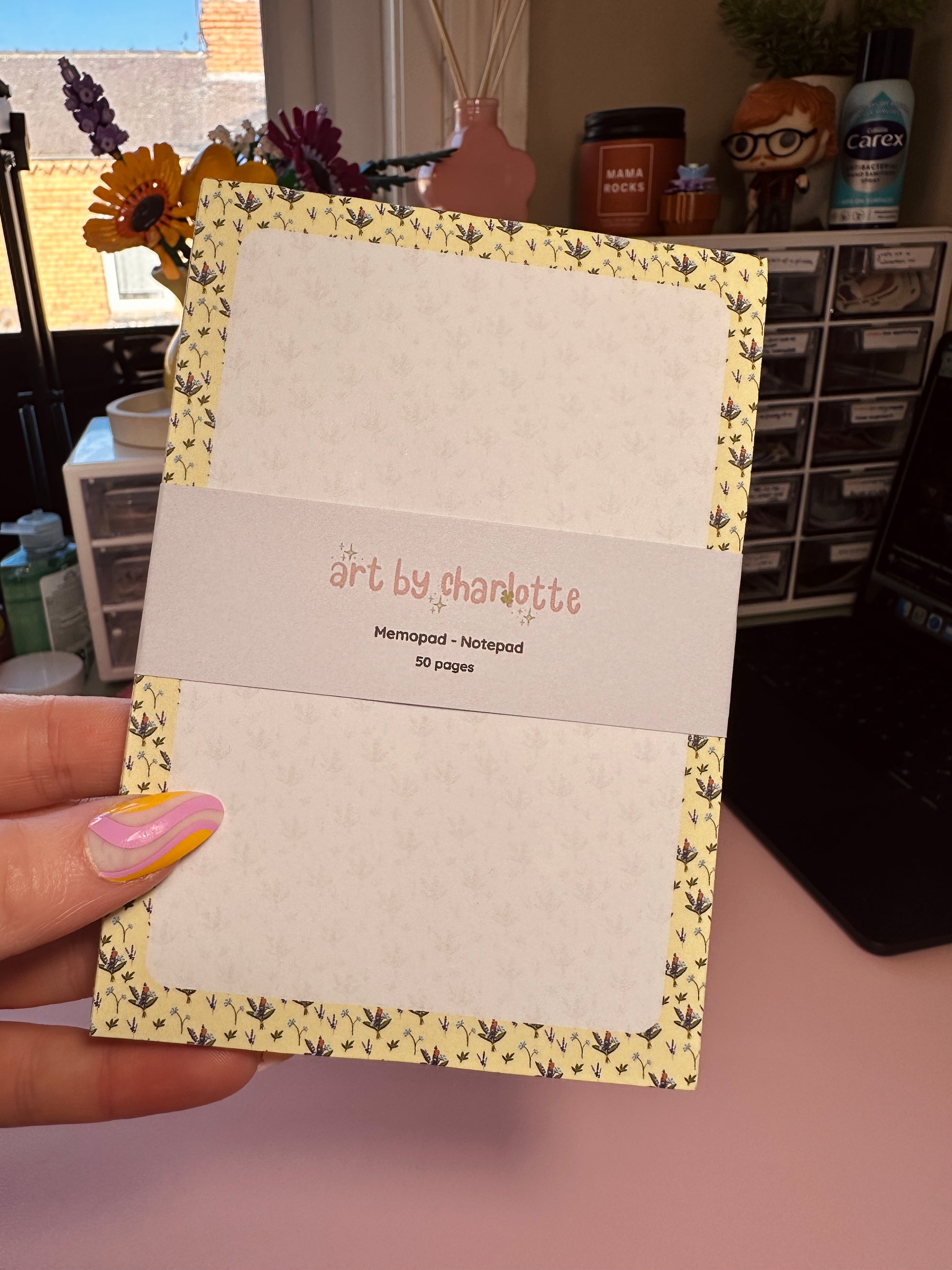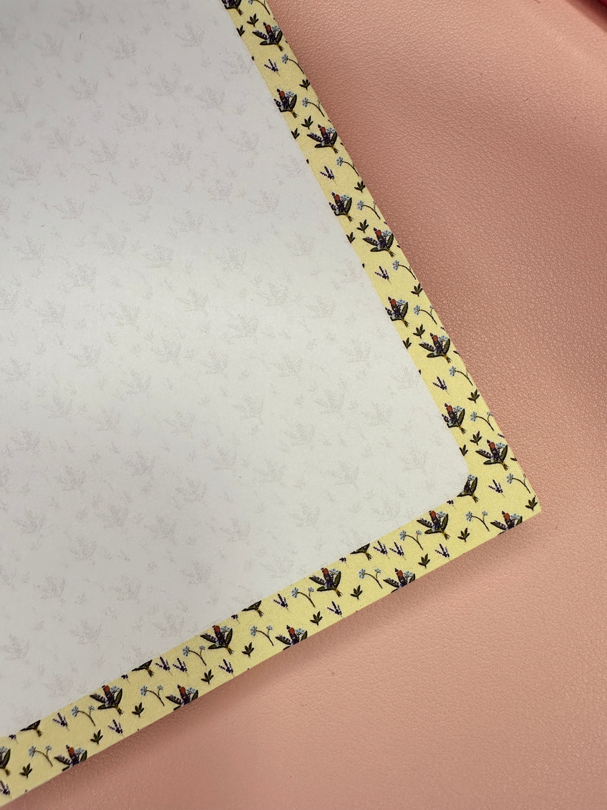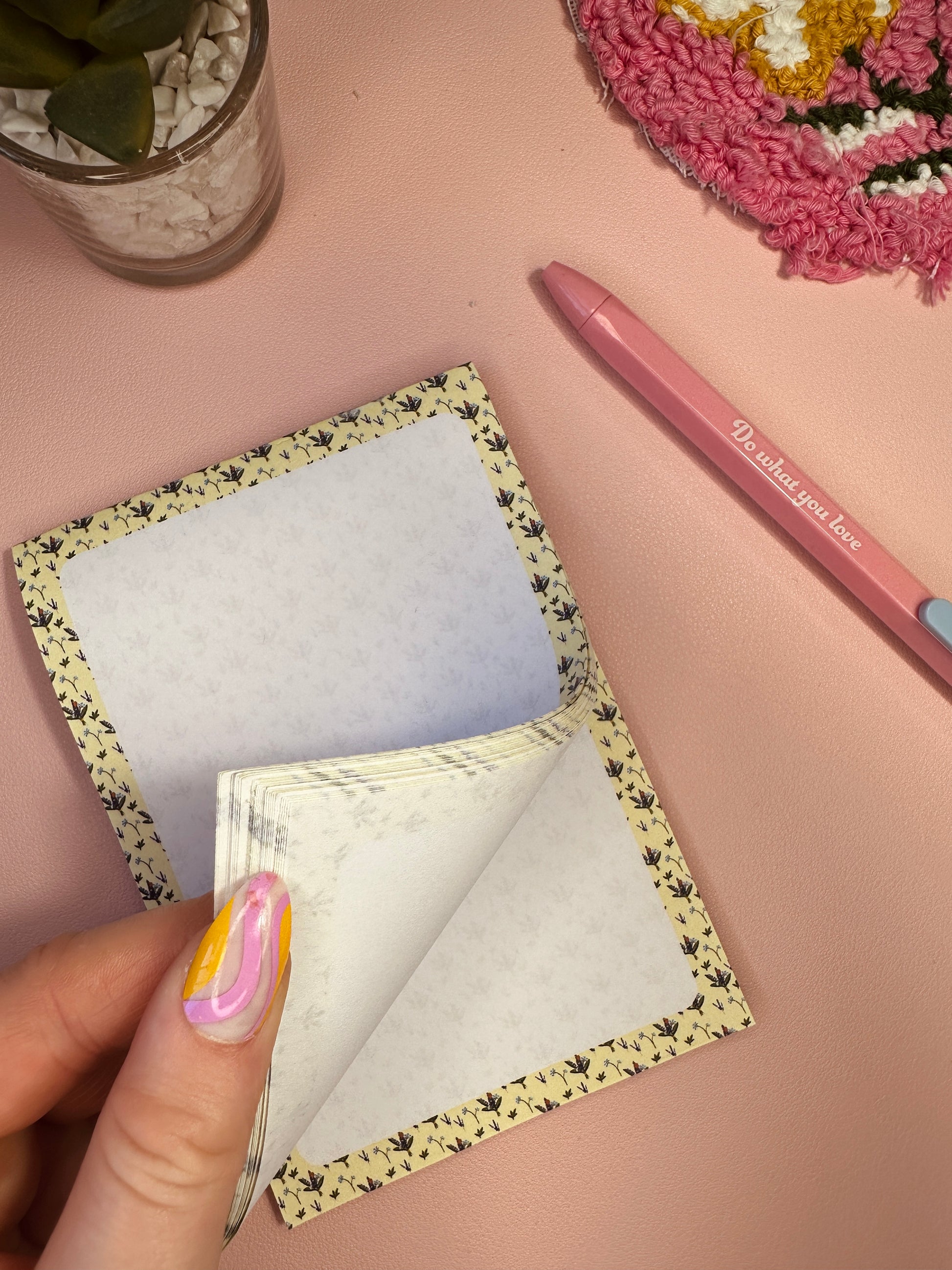 The elegant floral border adds a touch of sophistication to the blank space where you can write down your thoughts. The dreamy bunch pattern creates a fresh and cheerful look, spreading happiness through your note-taking. This memo pad is perfect for adding a pop of colour to your desk or workspace.