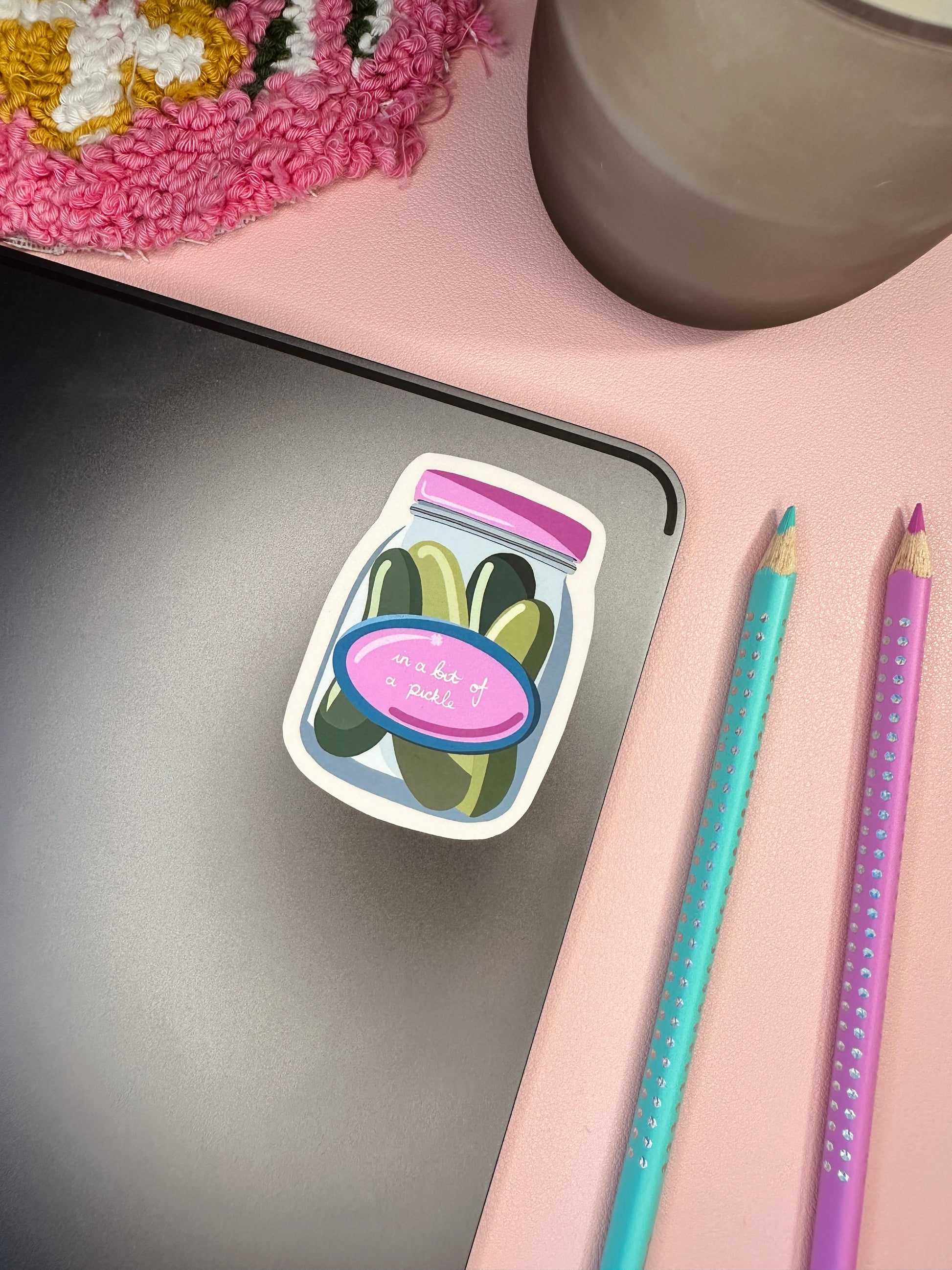 Need a little reminder to laugh through life's tough moments? Or maybe just a pick me up while working? Look no further than this adorable jar of pickles sticker!